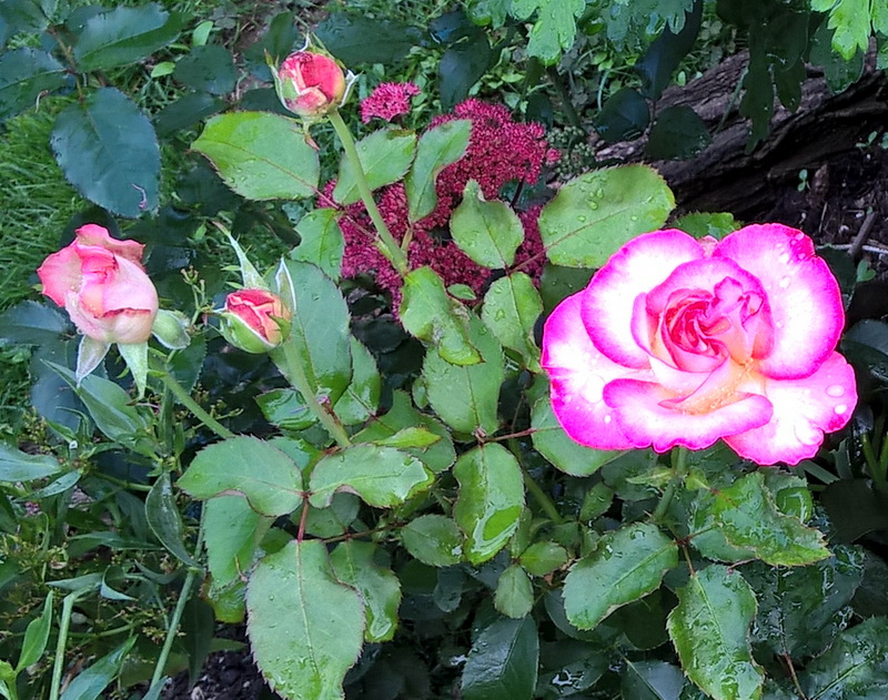 Bei dieser bin ich nicht sicher, welche Rose es ist. Schild ist abgehauen. Im Augenblick tendiere ich zu Jubilee du Prince de Monaco. Allerdings ist meine Rose deutlich gelber im Schlund als ich bisher auf anderen Bildern so gesehen habe. Der Rand ist eher rosa als rot.