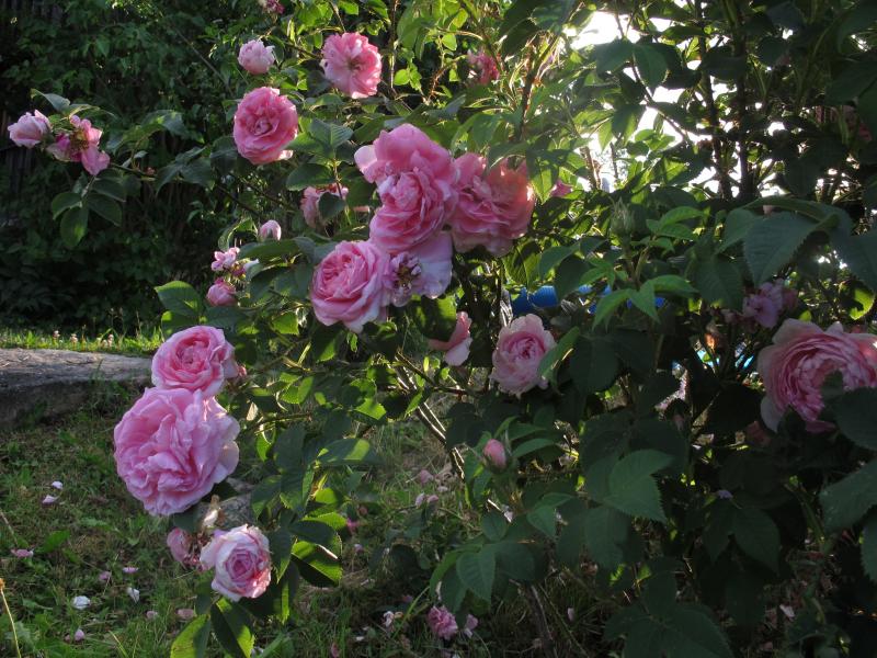 Fantin Latour hatte aufgrund des Rückschnitts nur ein paar Blüten, inzwischen hat sie üppig und kerngesund (gut, wenn man nicht blühen muß ;D) auf ca. 1,60 m ausgetrieben:
