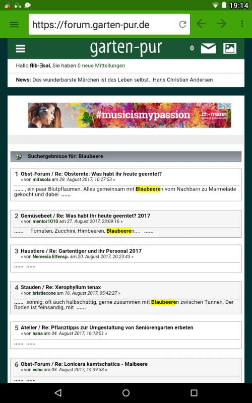 Garten Pur hat zwei Suchfunktionen. Gsuche und Suche. Bei Gsuche (Google-Suche) gibt es keine Zeitangaben.
