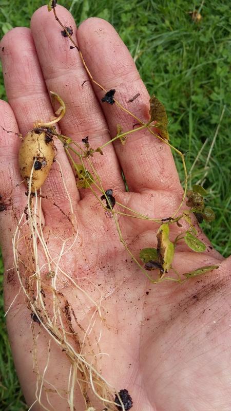 Und das ist die Knolle von der Pflanze, die letztes Jahr gekeimt ist und dieses Jahr die ersten Blüten hatte: