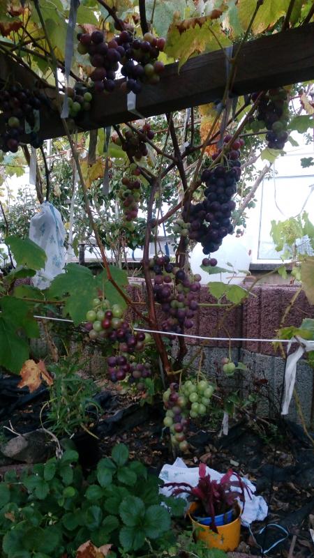 Galanth kränkelt, hat von allen Sorten am meisten Pilzbefall, und außerdem hat er als einziger in diesem Jahr gar keine Trauben, keine einzige, obwohl er im letzten Jahr 2 kleine Trauben hatte. Geschnitten wurde er von mir im Winter genauso wie die anderen 3 Reben, ausgetrieben hat er im Frühjahr gut und zeitig, auch ein paar wenige Blüten angesetzt, die aber alle kaputt gegangen sind (getroknet). Woran das liegt, weiß ich nicht, alle anderen Sorten hatten Trauben, die auch ausgereift und gut geschmeckt haben (außer Frumoasa Alba, die immer noich nicht wirklich reif ist - wie gesagt, kann man essen, aber die anderen Sorten waren viel besser im Geschmack, und bei diesem kalten nassen Herbst vllt. auch nicht mehr reif wird).