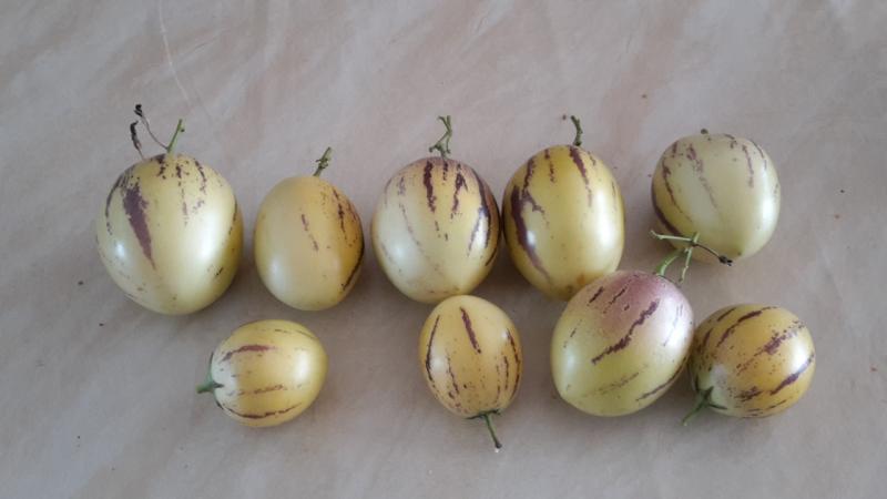 Habe heute die Kartoffeln 'Mayan Gold' aus dem Übersommerungsquartier geholt und ein paar Tomaten (Reisetomate, Harzer Kind, gelbe Johannisbeertomate, Indigo Kumquat und Speckled Roman) sowie Tomatillo und Paprika 'Herzje' geerntet.