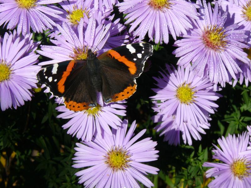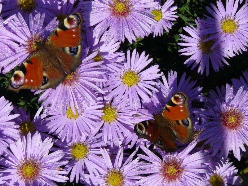 Ist mir am Sonntag auch bei meinen Eltern aufgefallen: Tagpfauenaugen scheinen verrückt nach Herbstastern zu sein.