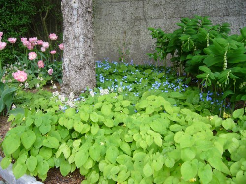 Ich bin da nicht so optimistisch, dass alles, was du erwähnst, findling, an dem Platz auf dem Bild auch gedeiht. Unter Tannen ist es extrem trocken und der Schatten ist sehr dunkel. Selbst im lichteren Schatten einer Kiefer konnte ich weder Waldmeister noch Maiglöckchen ansiedeln. Ich glaube auch nicht, dass Funkien gut mit dem Boden zurechtkommen wegen der Trockenheit. Und Tannen sind zudem noch Flachwurzler.Was bei mir richtig gut in Symbiose mit der Kiefer und nah an deren Stamm funktioniert hat, war eine Clematis montana, die bis in die Spitze des Baumes geklettert ist, so dass der Baum im späten Frühjahr mit Sternen übersät war, ganz wunderbar.Wenn man ein oder zwei Triebe einer solchen Clematis immer kurz über dem Boden zurückschneidet (ein Haupttrieb muss natürlich in den Baum gehen und darf nicht geschnitten werden), bringt sie neue Triebe, die den Boden etwas bedecken können.Vielleicht läßt sich auch Lamium ansiedeln, das sehr standorttolerant ist.