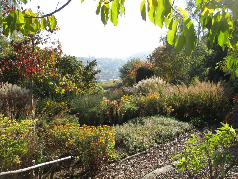 Sehr freue ich mich über die Herbtfärbung der Birne im Beet