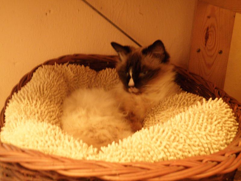 :) Luna liegt wieder wohlig in ihre Wärmekiste und verdaut das Frühstück