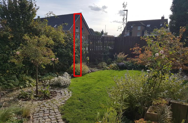 Ich suche für den rot markierten Standort ein passendes Gehölz.