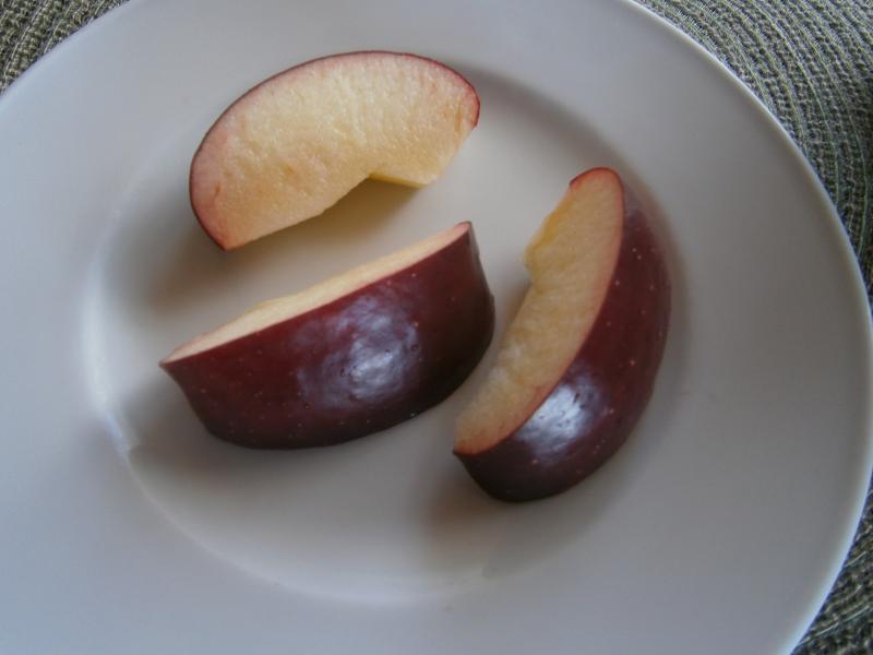 Idared bedeutet der Rote von Idaho, er war ganz dunkelrot, ein Schneewittchenapfel, auch das Fruchtfleisch war leicht rötlich unter der Schale. Ein hübscher Apfel.