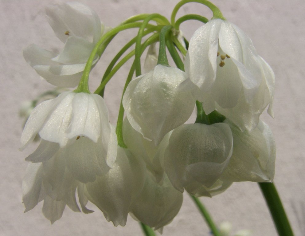 Bin in jeder Regenpause mit deinen goldgebetteten Perlchen durch den Garten gepilgert lieber Norbertallium subhirsutum gehört zumindest bei mir im garten nicht zu den wucherern. er hat zwar nur einfach weiße blüten, aber im habitus und einzelstellung wünderschön, wenn er sich aus polsterpflanzen heraus entwickeln kann. er lief lange bei mir als allium spec. "marc aurel", weil mein freund aurel ihn aus dem grundstück seiner eltern in nordgriechenland mitbrachte wo er wie kraut wächst. ich dachte schon, ich hätte ihn verloren, aber er tauchte überraschen wieder an einer ganz anderen stelle auf. wahrscheinlich was die winerhärte betrifft grenzwertig, aber scheint sich zumindest über versamung halten zu können. die etwas verbreiteten blätter sind am rand mit feinen härchen versehen. höhe ~25-30 cm.norbert