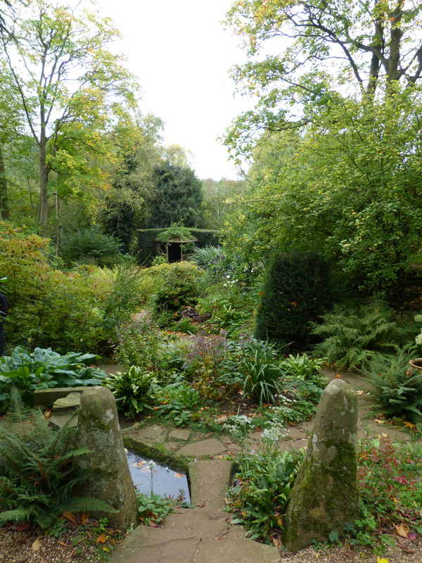 In diesem Garten hatte ich trotz der Größe nie das Gefühl, etwas zu verpassen, wenn ich einen Weg einschlug. Überall kam man wieder hin - auf kleinen Wegen, überraschenden Treppchen, verborgenen Sitzplätzen, immer etwas fließendes Wasser in der Nähe, Geräusche von Tieren exotisch und häuslich, ein Obstgarten mit riesigen alten Bäumen, Hühner, ein Wasserlauf. Immer wieder neue Sichtachsen an deren Ende Teile des traumhaften Gebäudes hervor blinzelten.