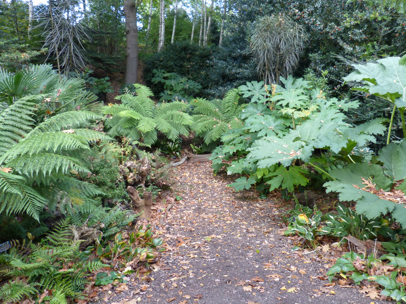 Hinter der nächsten Ecke wird es tropisch mit Baumfarnen, Musa, Tetrapanax und vielem anderen.