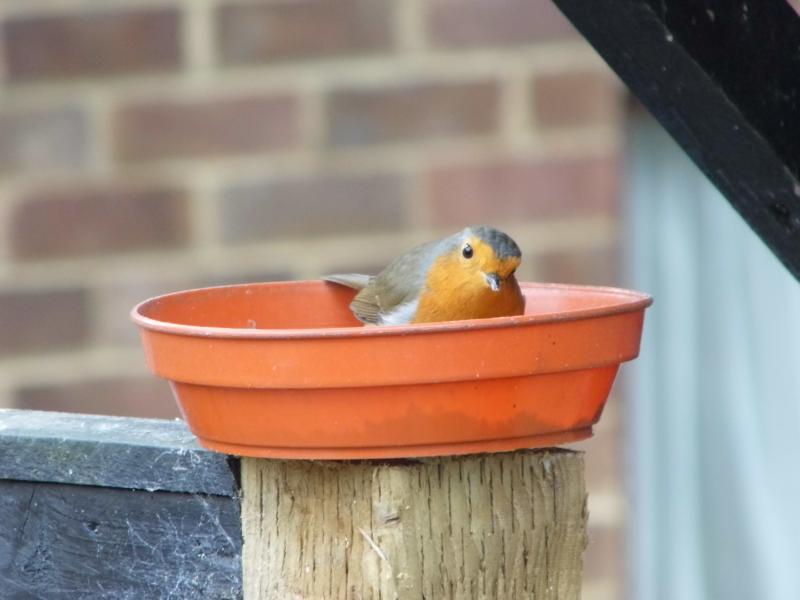 Ein häufiger Gast in den Gärten und Gärtnereien - dieser hier hatte keine Scheu und pickte fleißig weiter im Futter...