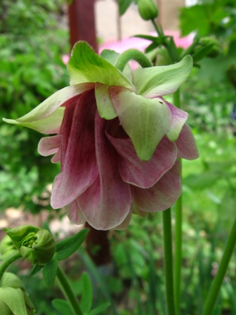 Man kann direkt auf den Stempel und die Staubgefäße gucken. :'(Wer bitteschön frißt denn Akeleiblütenblätter wenn sie noch nicht "reif" sind und läßt die Staudenblätter unbeschädigt??? Schnecken? Ich habe keine Schleimspuren gesehen. Käfer? Wenn ich die erwische...Oder ist die mutiert... ooch, ich probier mal Windbesäubung aus ;)Gerade auf diese Akelei habe ich mich gefreut... Nicht, dass sie was besonderes wäre... aber auf diesem Platz habe ich sie mir besonders schön vorgestellt. Und nun...Stempel und Staubgefäße mit einem winzigen weinroten Rand. pffff......das ist vielleicht originell, aber nicht hübsch.