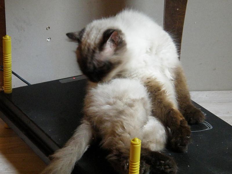 Mia habe ich heute beim Frühstück beobachtet und finde, sie sieht inzwischen wieder wie eine wohlgenährte Katze aus. Die Flanken sind nicht mehr eingefallen und ihr Fell zeigt auch schon etwas mehr Glanz.