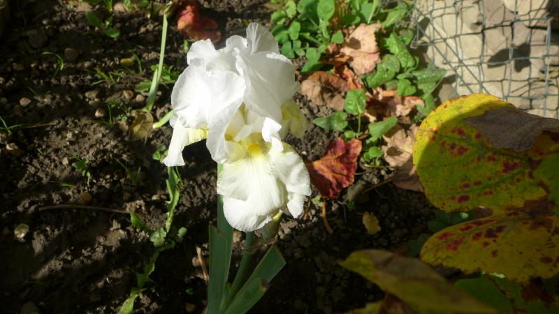 Ab und an eine weiße Iris dazwischen lockert die Pflanzung schön auf. Wenn es nicht ganz so bunt sein soll.
