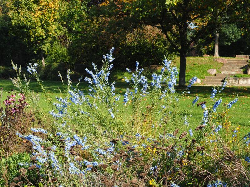der Park hat eine kleine bebaute Erhöhung, davor zum Berliner Ring hin die Salvia azurea.