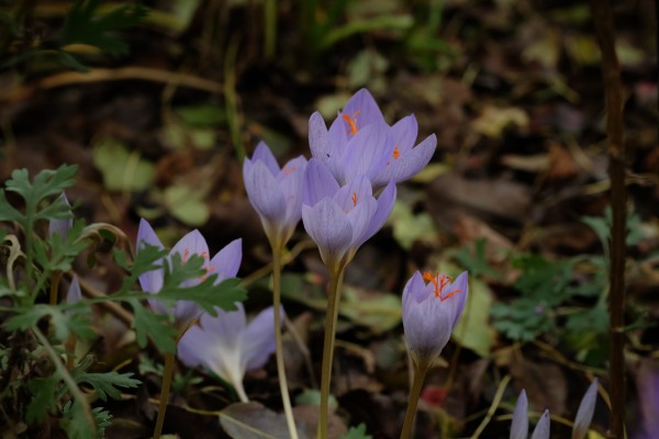 Aus dem großen Garten hatte ich einen schönen Tuff mit dunklen Herbstcrocussen mitgenommen. Die Sorte weiß ich nicht mehr. Könnte C. banaticus sein, für C. kotscha... ist er zu dunkel.