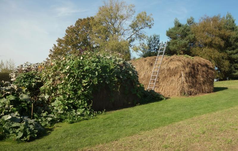 Heuhaufen hinten und vorne mit Kürbis bewachsen. Die scheinen Platz und Zeit zu haben und in großen Räumen und langen Zeiträumen zu gärtnern. Gediegen. Dixter ist einer der drei Gärten, die mich in England interessieren und über die ich immer gerne viel gelesen habe.