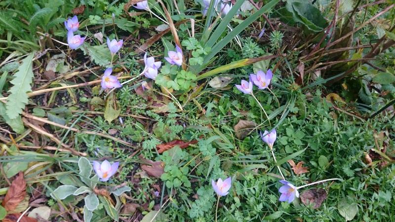 Hie blüht etwas, das ich als Safrankrokus ansprechen würde - allerdings an einer Stelle, wo ich nie und nimmer einen gepflanzt hätte (Maulwurfsgang ::)).