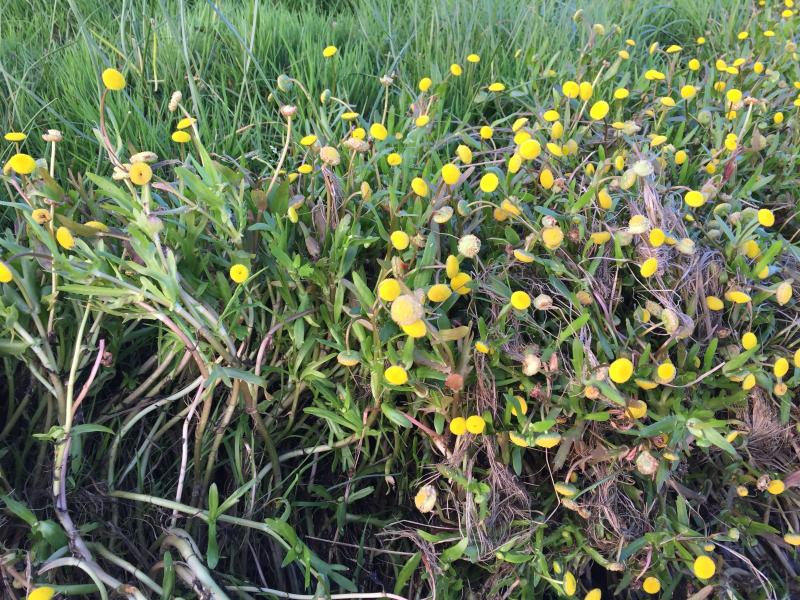 seit wann findet man sowas eigentlich in nordfriesischen salzwiesen?! gestern abend stach mir das gelb der krähenfuß-laugenblume, cotula coronopifolia ins gesicht. :o 8)