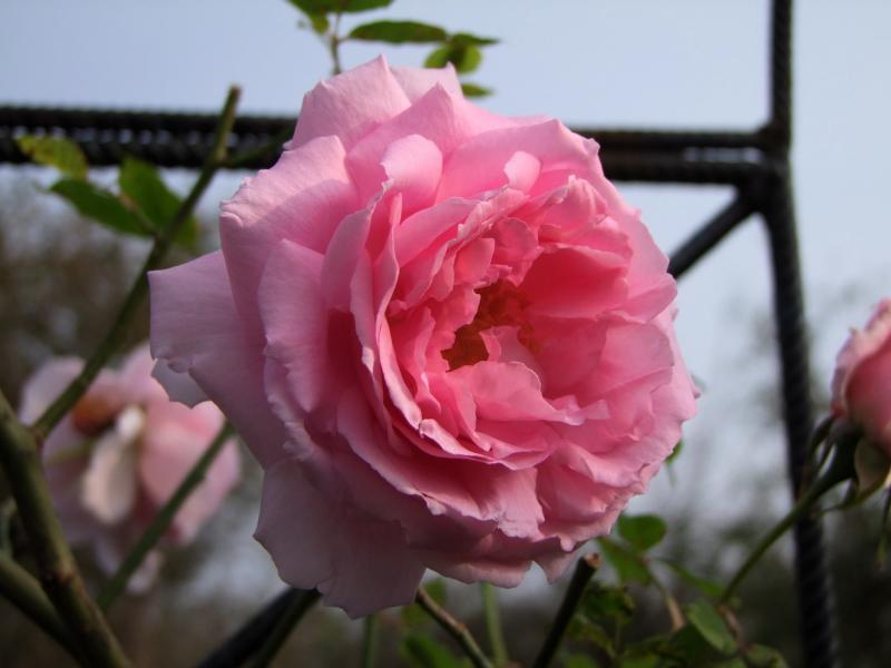 Nach gutem Ausputzen blüht auch Captain Christy wieder.Die Blüten hellen noch ein wenig auf,so dass immer ein leichtes Farbspiel von kräftigrosa zu hellrosa am Bogen zu sehen ist.