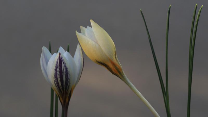 Ein Kreuzung von einem frühjahrsblühenden Crocus chysanthus mit einem herbstblühenden Crocus melantherus, gestern erblüht.