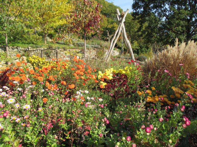 Jetzt beginnen auch die Chrysanthemen mit den roten Tönen zu blühen.