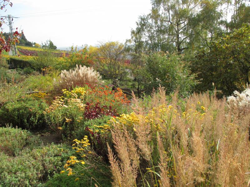 Blick über das Beet in die Ebene.