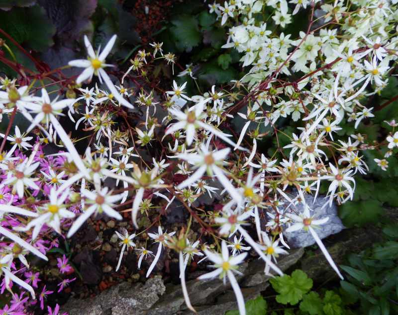Die sind wunderschön eure Herbststeinbreche. :)(Bei meiner ersten Begegnung, wo er ausgepflanzt in einer Gärtnerei war dachte ich, Heuchera o.Ä.? War im Sommer und er hatte nicht geblüht. ;))
