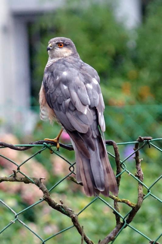 auf deinem Foto ist ein Sperber, der auch bei mir ganz regelmäßig das Futterhaus kontrolliert. Wanderfalke ist ein völlig anderer Jäger, den du nicht am Futterhaus triffst.
