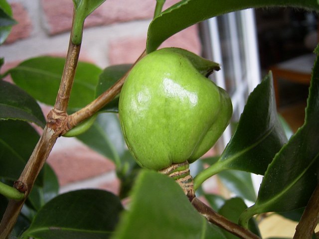 Ich habe im Garten eine sehr große Camellia, die leider bischen im Schatten steht und nicht so prachtvoll blüht. Trotzdem ein Paar einfachen weißen Blüten hatte ich in diesem Jahr. Neulich habe ich auch die Früchte entdeckt. Sie werden aber bestimmt nicht reif aber schön anzusehen. ;D