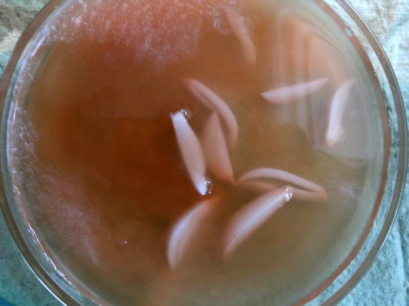 Nach dem Schneiden kamen die Zwiebel und Scheibchen in ein Lösung mit Teldor.
