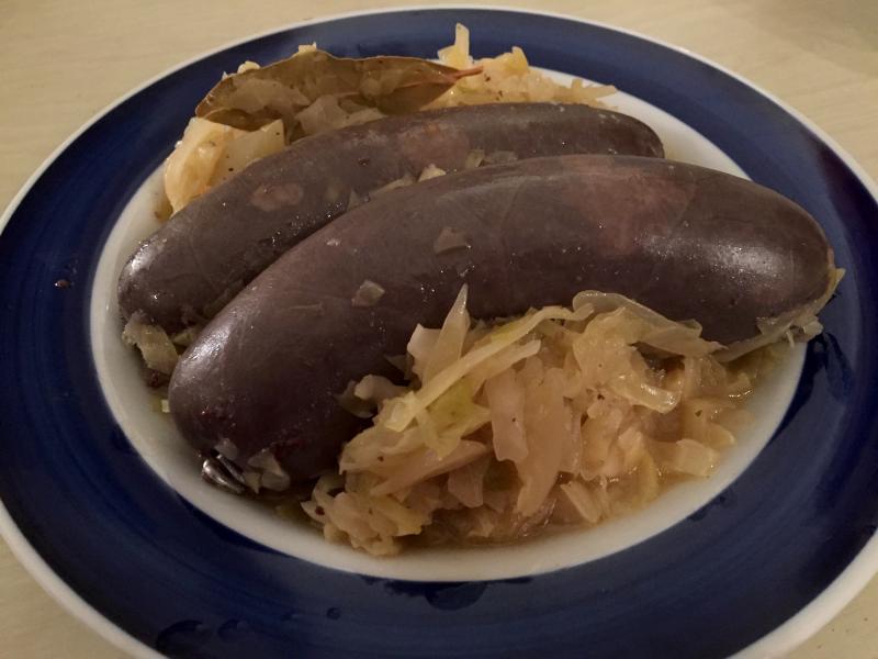 hier gab es selbstgemachtes extramildes filderkraut gedünstet mit berliner blutwurst.
