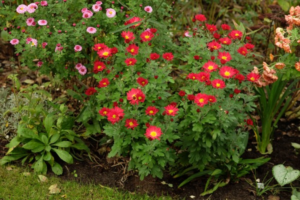 Chrysanthemum 'Stolze von Berlin' und 'Novembersonne'