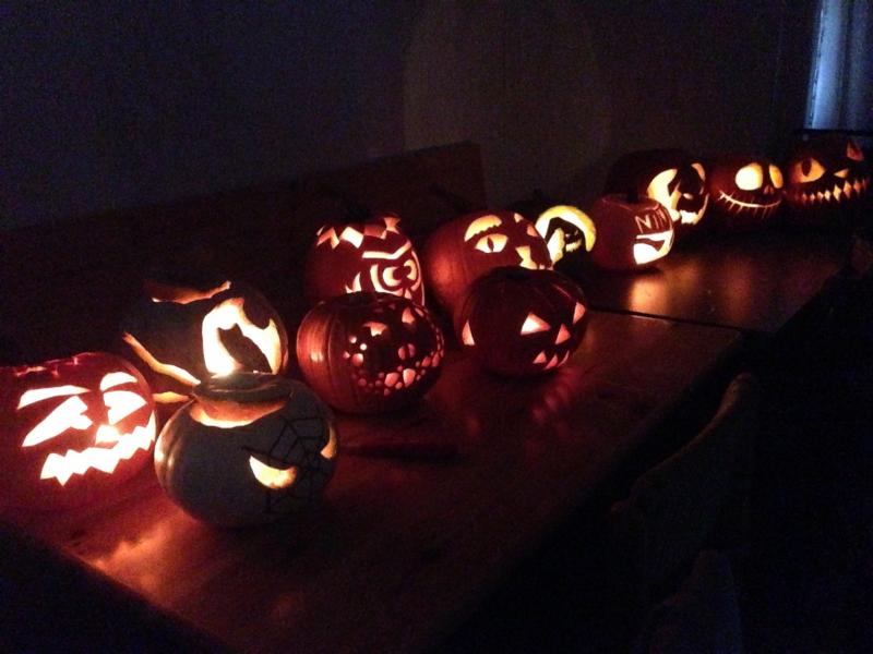 Ich hab dieses Jahr selbstgebackenes Brot dazu gesteuert. Roggenmischbrot, Zwiebel-Kartoffel-Speckzopf, Brot mit Maronen, gebackenem Kürbis und Kürbiskernen, sowie (nicht im Bild) Ciabatta.