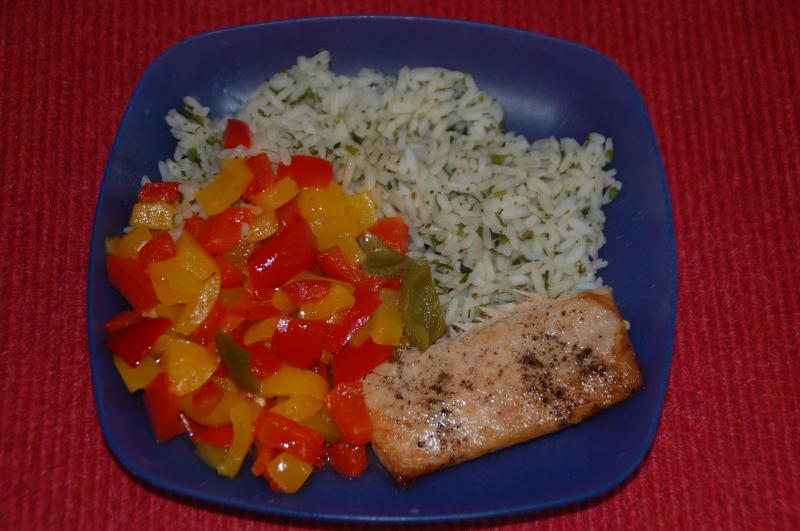 Kräuterreis, Paprikagemüse, Wildlachsfilet