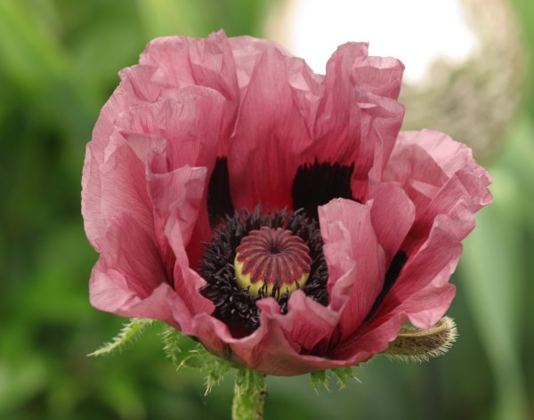 Als letzten Freitag mal die Sonne ab und zu schien, hat sich ein vorwitziger Türkenmohn-Sämling in Rosa mit Basalflecken entknittert.Seine 20 Geschwister haben sich nicht getraut und stehen immer noch mit dicken geschlossenen Knospen da.und frieren bei 11°.