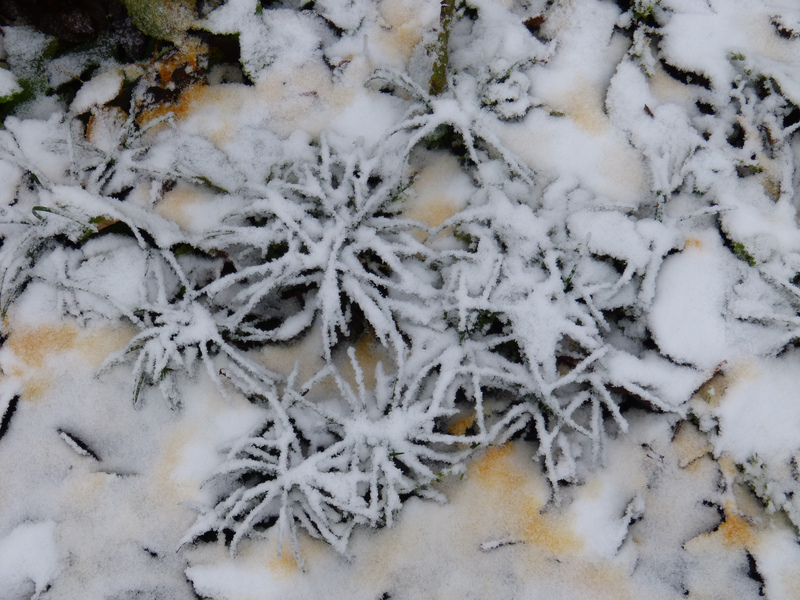 Im Sommerbeet blüht noch unverdrossen eine Rudbeckie, die sich als Nachzügler irgendwann im September/Oktober entschlossen hat, doch noch einen Blütenstengel zu treiben, das Laub der sich dort irgendwann selbst angesiedelten Wurmfarne schlägt nach und nach von grün nach braun um, das Sedum leuchtet fahlgelb mit einem purpurnen Schimmer in den Blütentellern, und die Zweige des ebenfalls irgendwann wild gewachsenen Hartriegels bilden einen schönen Kontrast zur großen Nordmanntanne.