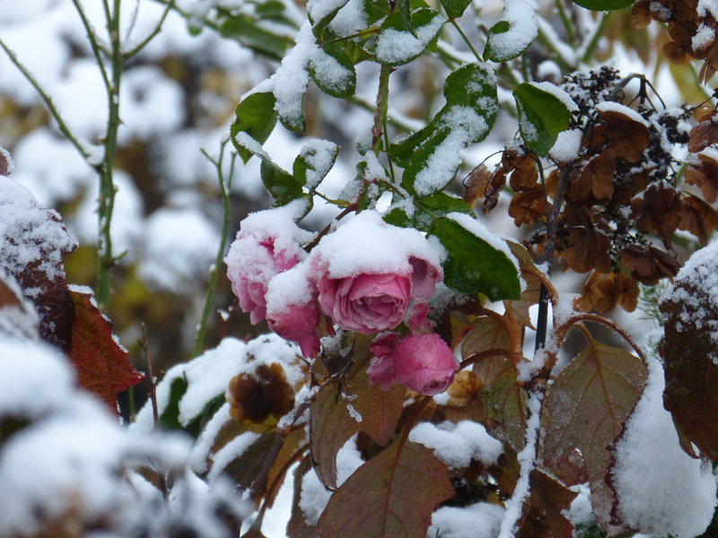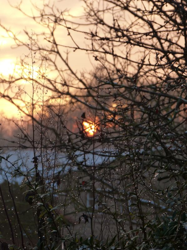 Im Sommerbeet blüht noch unverdrossen eine Rudbeckie, die sich als Nachzügler irgendwann im September/Oktober entschlossen hat, doch noch einen Blütenstengel zu treiben, das Laub der sich dort irgendwann selbst angesiedelten Wurmfarne schlägt nach und nach von grün nach braun um, das Sedum leuchtet fahlgelb mit einem purpurnen Schimmer in den Blütentellern, und die Zweige des ebenfalls irgendwann wild gewachsenen Hartriegels bilden einen schönen Kontrast zur großen Nordmanntanne.