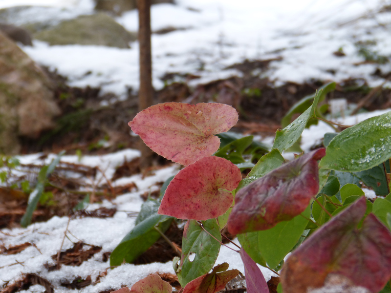 Die Epimedium leuchten teilweise noch mit der Herbstfärbung.