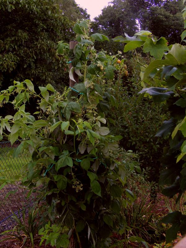 Jetzt ist Himbeere Autum Amber auf neuen Erntekurs. Muste ihr einen neuen Pfahl geben. Die