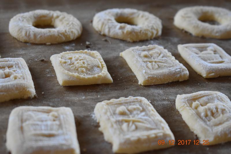 Bärentatzen, ein ganz altes Familienrezept. Dazu braucht man Weißblechformen, in die der Teig reingedrückt wird.