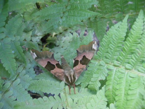 Gestern entdeckte ich auf einem Farn sitzend "Etwas", das ich vorher noch nie gesehen habe.Der Falter hat eine Flügelspannweite von mindestens 6 cm, und einen recht massigen Körper.Das Muster auf den Flügeln erinnerte mich ganz spontan an Militär -Tarnmuster