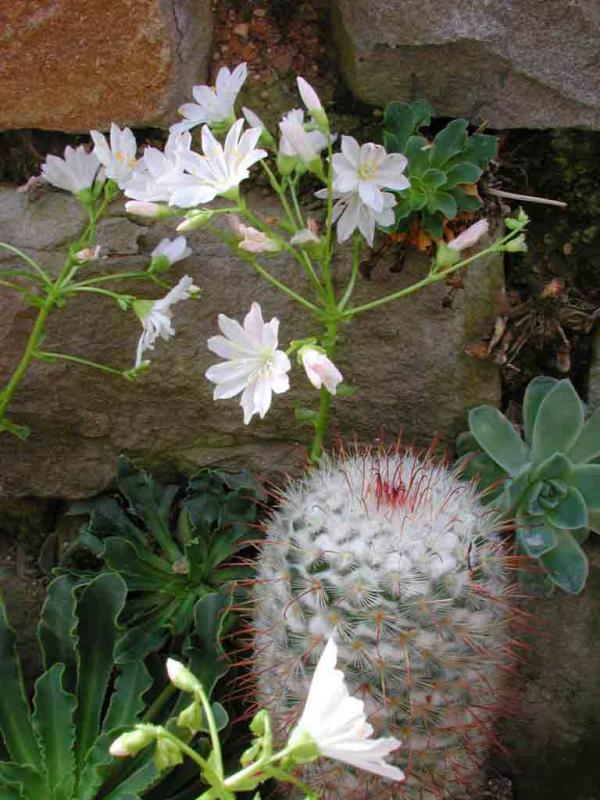 Passt zwar nicht ganz hier, denn Lewisien gedeihen bei mir nur schlecht im Freien. Unter Glas dagegen kein Problem. Faszinierend finde ich jedes Jahr die Blüte von rediviva. Ohne Laub sprießen riesige Blüten aus der Erde