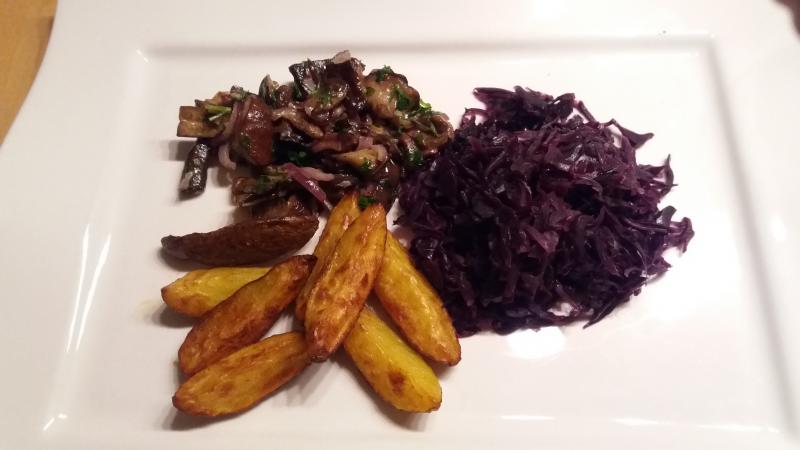 Kotlett vom Iberico-Schwein mit Röstkartoffeln und Rest Spitzkohl
