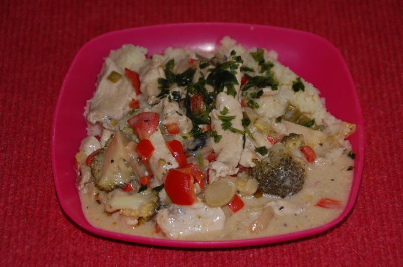 Oh, so ein Hähchengeschnetzeltes muss ich demnächst auch mal machen, wenn die kokosmilchliebende Tochter da ist. :D
