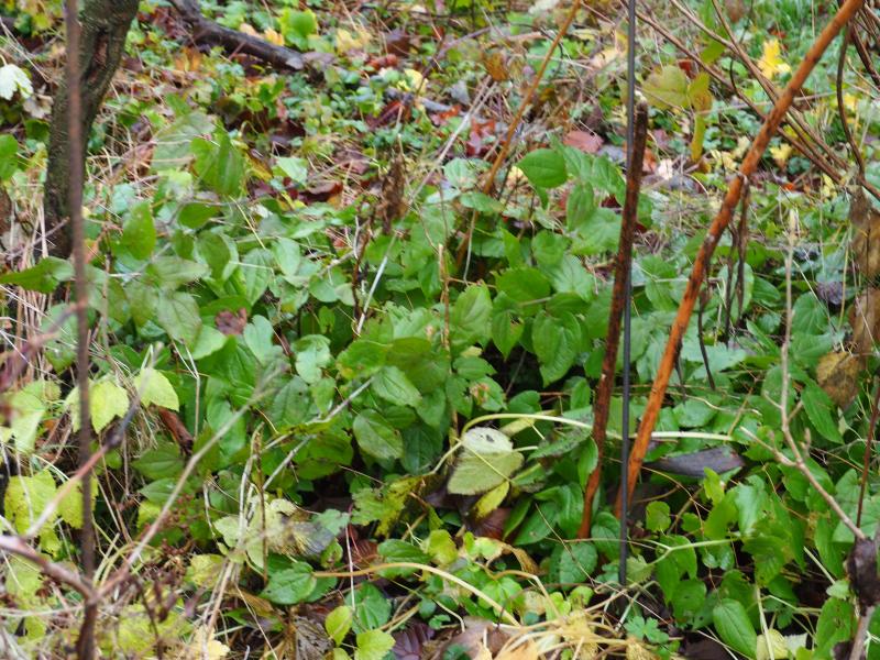der Teppich mit Pachyphragma macrophyllum ist noch frisch grün, später wird er vom Frost gebeutelt in matschigen Schleim übergehen um dann mit weißen Knospen überwachsen zu werden.