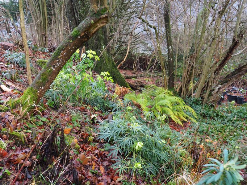 zum Balkanhügel dann Polystichum aculeatum und Vinca balcanica.