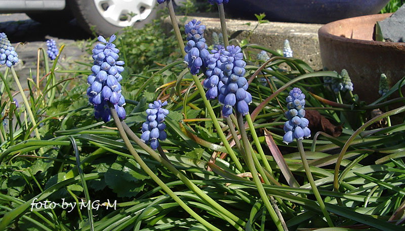 Die rosa Muscaris blühen heuer als Einzige überhaupt nicht, haben nur Laub gebildet.