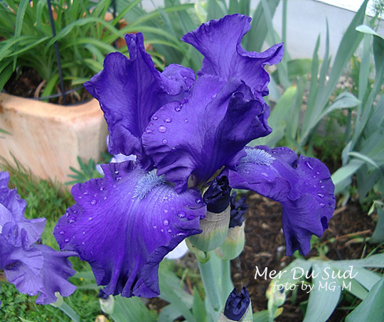 ! Kann ich ja wieder ein Namensschildchen schreiben.bluebells, wie hoch ist die Codicil bei dir? Meine ist sehr niedrig geblieben.Ist DAS ein Blau? Das ist ein Blau! So schön wie der Name: Mer du Sud. Leider mußte ich die Blüte aus einem ungünstigen Winkel fotografieren um die Farbe richtig wiederzugeben.